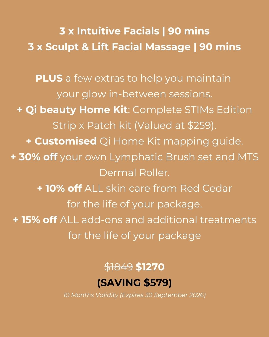 + 15% off ALL add-ons and additional treatments for the life of your package